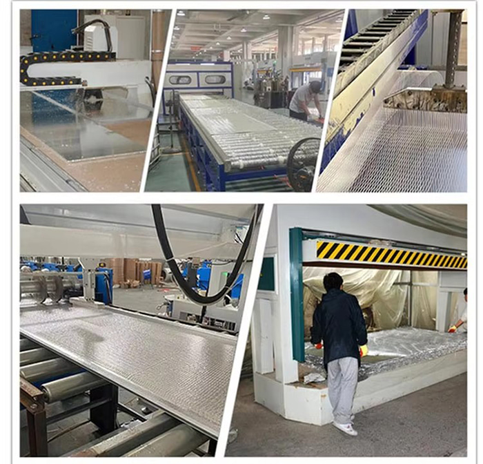 Tectum: In ornatu aedificio, tabulae fauus aluminii communiter etiam ad laquearia utuntur. Eius indoles distrahens altam vim ad laquearia structurae supplementi necessitatem reducere potest, dum in planitie ac lenitate laquearia spectat, bonum ornatum effectum ostendens.
