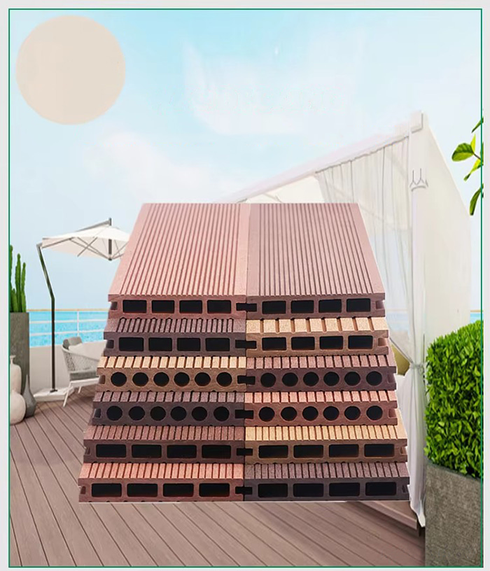 Tabulatum WPC (Wood Plastic Composite) novum genus est pavimenti environmentally- amicabilis e fibris ligneis vel bamboo fibris factis sicut nucleus materia rudis, composita cum resina, flamma retardant, etc. per caliditas et pressionis altae processum. Eius structura in quattuor stratis divisa est: indumentum renitens iacuit (UV coating), lignum frumenti/lapidis granum decorativum iacuit, fibra stratum materiae basi auctum et iacuit tacitum. Habet et texturam lignorum realium et peractorum et umoris probationis operandi plasticae, et aptum ad ornatum tectis ac velit pavimento plenae scaenae..