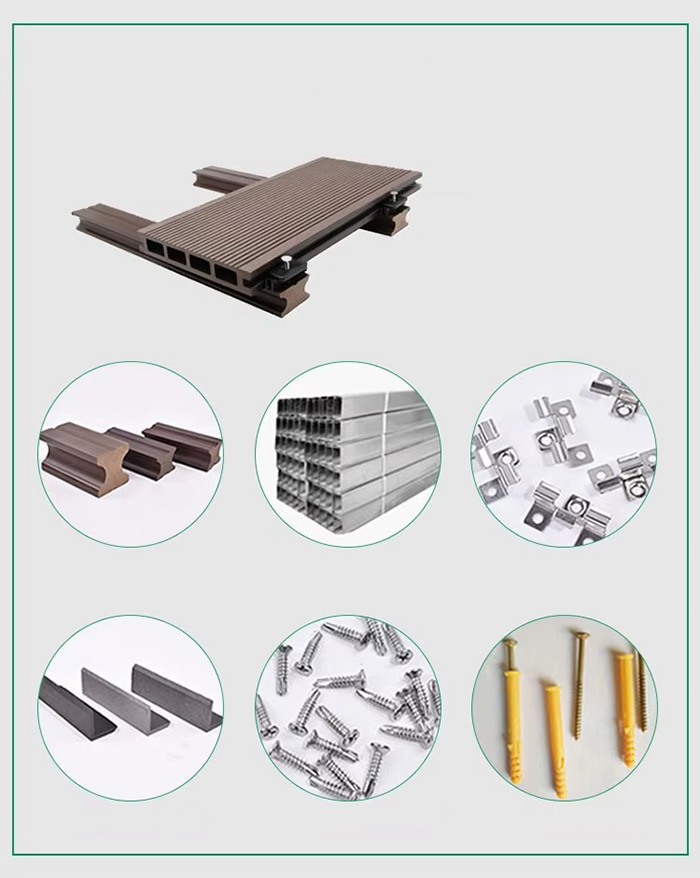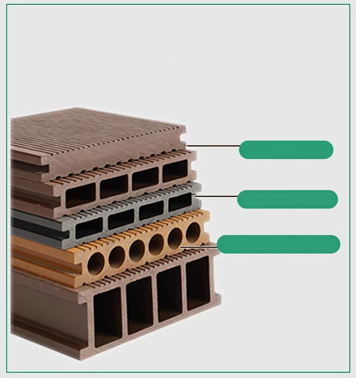 Substratum fibrarum lignorum mixtionis (50-60%) PVC resinae (30-40%) fibrarum carbonis anti-erosionis corrosionis (5—10%), addito aluminio hydroxidi flammae retardat ut ad gradum A2 emendandum.