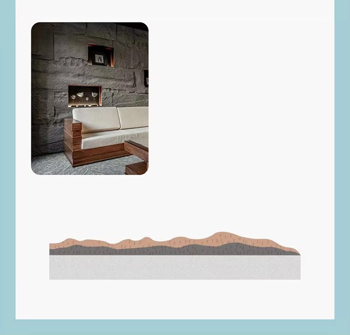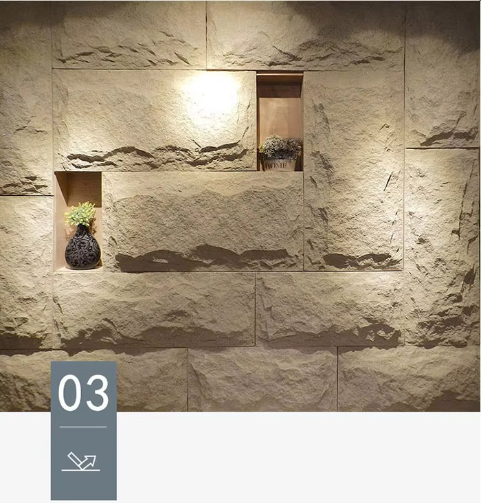 Murus interior aedificiorum; apta ad parietem interiorem ornamentum residentiae, officii, spatii commercialis, etc., quae altiorem textura spatii augere possunt.