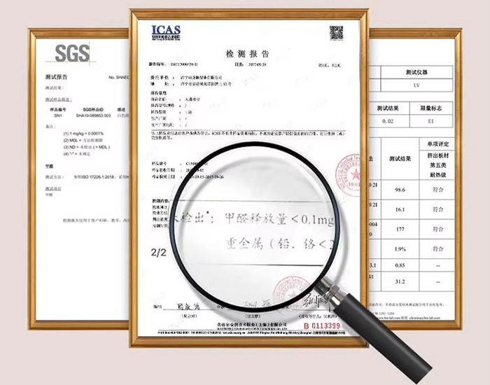 Environmental salus materiae rudis sunt formaldehyde-liberi, gravis metalli-liberi, CARB/FSC-certificatus, et 100% recyclable.