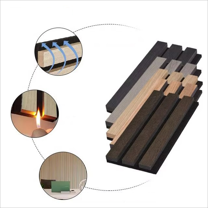 WPC sonus hauriens tabulam est environmentally- amica sonus-absorbens materiam decorativam e materiis compositis lignorum-plasticis. technologiam technologiarum lignorum oecologicorum adoptat, cum striatus in fronte et foraminibus in dorso basis materialis ad sonum-absorbens structuram resonans incisum formans. Hoc consilium WPC sonum hauriendi tabulas facit non solum bonum soni effusio perficiendi, sed etiam probationem, humorem-probationem, insectum probationem, termite-probationem et alias notas. Superficies eius ornari potest lignis naturalibus grano vel varietate colorum ut effectus visuales divites praebeant